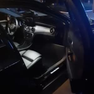 В передних дверях установлена проэкция с логотипом мерседеса.
