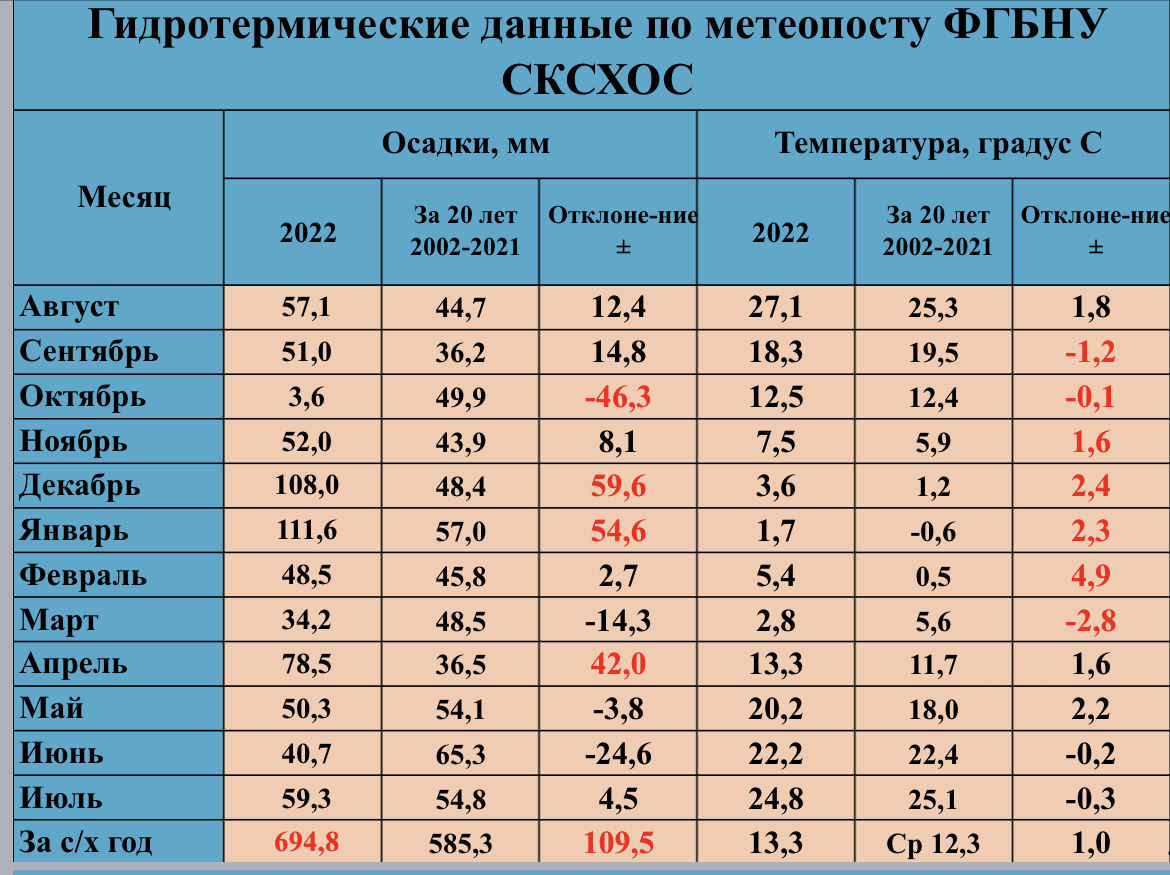 — В целом погодные условия были благоприятными,— отметил Виктор Гукалов. — Так, за год выпало почти семьсот миллиметров осадков, однако этот показатель почти на пятнадцать процентов превышал норму. Среднегодовая температура была выше на один градус. При этом осадки выпадали не равномерно. Октябрьская засуха привела к тому, что урожайность культур, посеянных в оптимальные и поздние сроки, впервые за много лет оказалась ниже той, что получена на посевах раннего, сентябрьского сева.