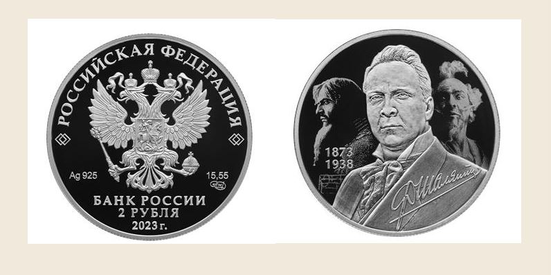Банк России 31 января выпустил в обращение памятную серебряную монету номиналом 2 рубля «Певец Ф.И. Шаляпин, к 150-летию со дня рождения» серии «Выдающиеся личности России».
