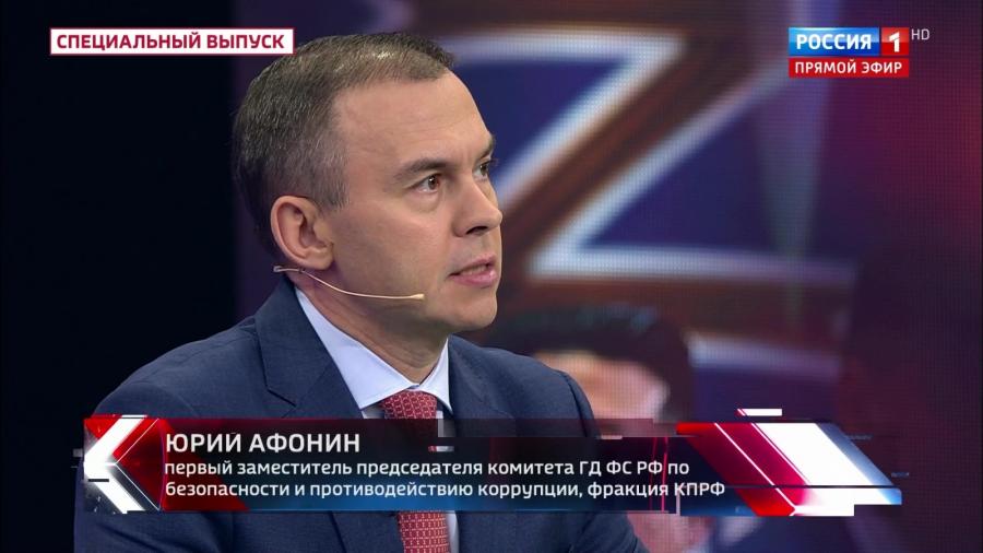 Первый заместитель Председателя Центрального Комитета КПРФ Ю.В. Афонин принял участие в программе «60 минут» на телеканале «Россия-1»