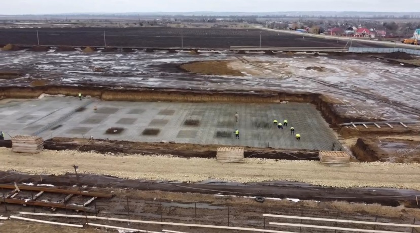 Сейчас на объекте рабочие армируют и устанавливают опалубку железобетонных плит, устанавливают бетонную подготовку под подпорную стену.