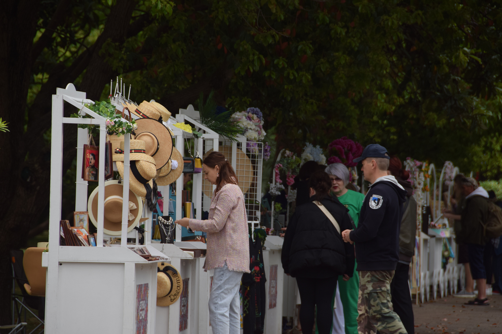 На улице Навагинской рядом с площадью Флага работает выставка-ярмарка мастеров прикладного творчества. На ней сочинские умельцы представляют изделия ручной работы, выполненные в различных стилях и техниках, в том числе и из природных материалов.