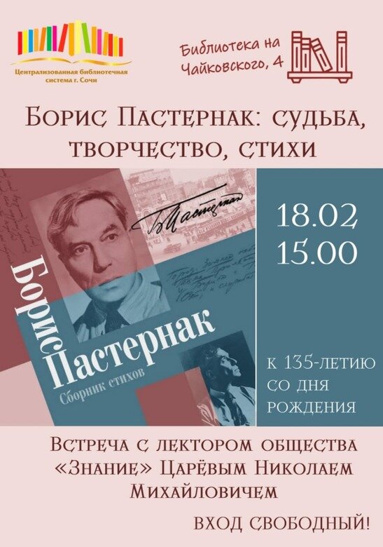 Читальный зал Центральной городской библиотеки приглашает жителей и гостей города-курорта Сочи на встречу с лектором общества «Знание» Царёвым Николаем Михайловичем.