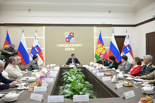 В неформальной обстановке гости обсудили патриотическое воспитание молодежи, меры поддержки участников СВО и их семей, осуществляемые в Сочи.