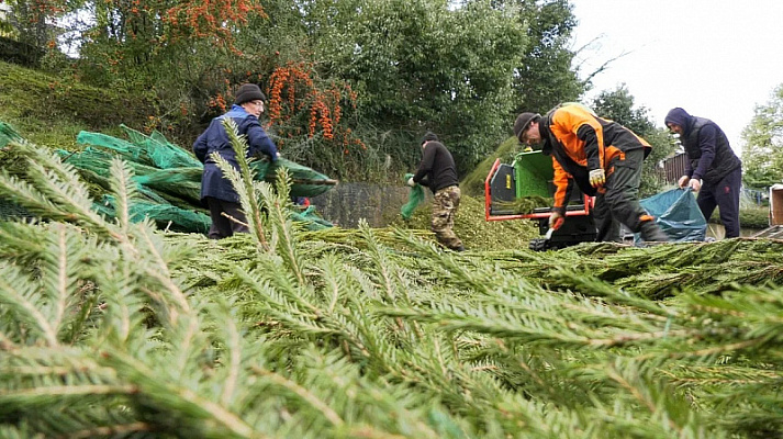 В рамках проекта на курорте ведется сбор новогодних елей для их дальнейшей переработки.