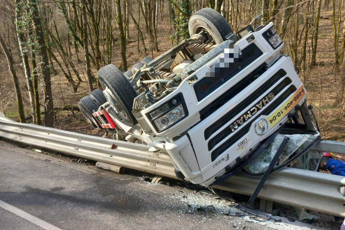 По их словам, у обочины дороги стояла спецмашина которая подрезала ветки и сухие деревья, позади спецмашины ехал автобус и бетономешалка.