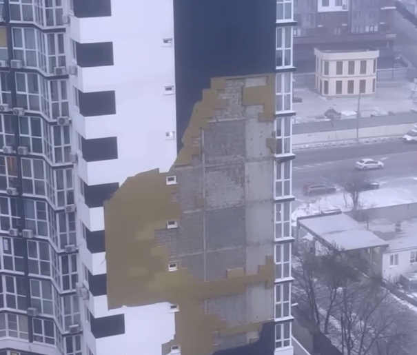 “У дома в Новороссийске разорвало ураганом обшивку. Фасад ЖК «Облака» в Новороссийске от застройщика. Неометрия разлетелся по округе”, — рассказал автор видео.