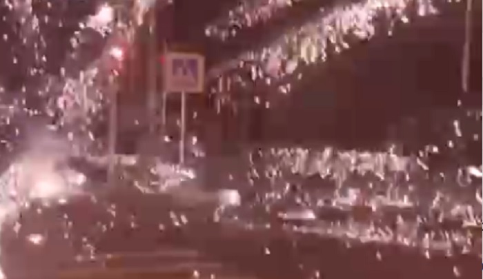 Один из зарядов отрикошетил в фонарь и землю Фото: кадр видео В Анапе салют, запущенный с дерева, чуть не попал в женщину.