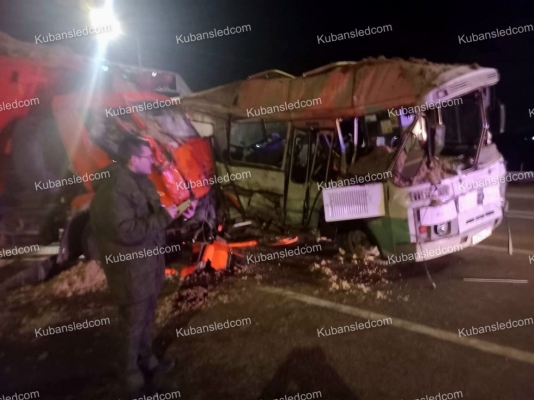 Сегодня в вечернее время на автодороге "Кавказ" в районе города Армавира произошло дорожно-транспортное происшествие с участием пассажирского автобуса и автомобиля КАМАЗ". В результате происшествия один из пассажиров автобуса погиб, травмы различной степени тяжести получили ещё 5 пассажиров автобуса, в числе которых 8-летняя девочка, а также оба водителя транспортных средств. Пострадавшие доставлены в медицинское учреждение для оказания необходимой помощи.