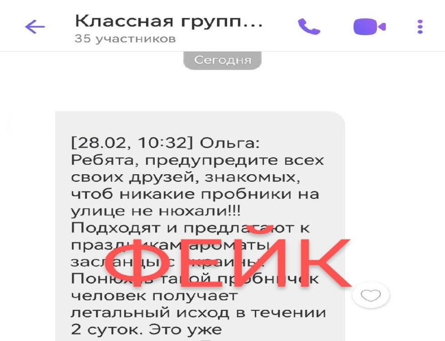 В мессенджерах и соцсетях распространяется голосовое сообщение о якобы случаях отравления местных жителей после вдыхания неизвестных веществ из флаконов, предложенных незнакомцами.
