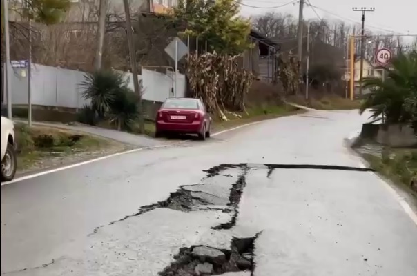 Инцидент произошел на улице Блинова Фото: кадр видео В Сочи треснула дорога в селе Верхневеселое.