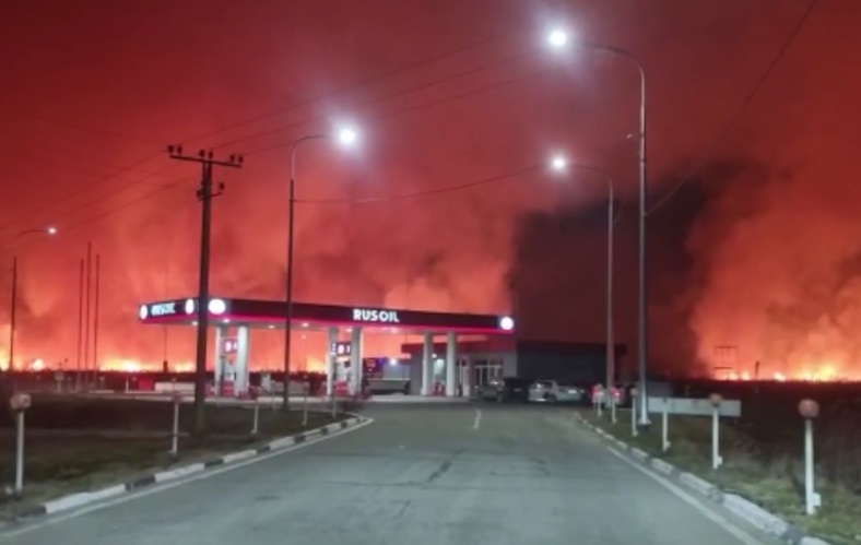 Накануне около 22.00 в районе поселка Октябрьского загорелись плавни. Огонь распространился на площади 300 кв.м и «подошел» к заправке, которая располагалась недалеко от места возгорания.