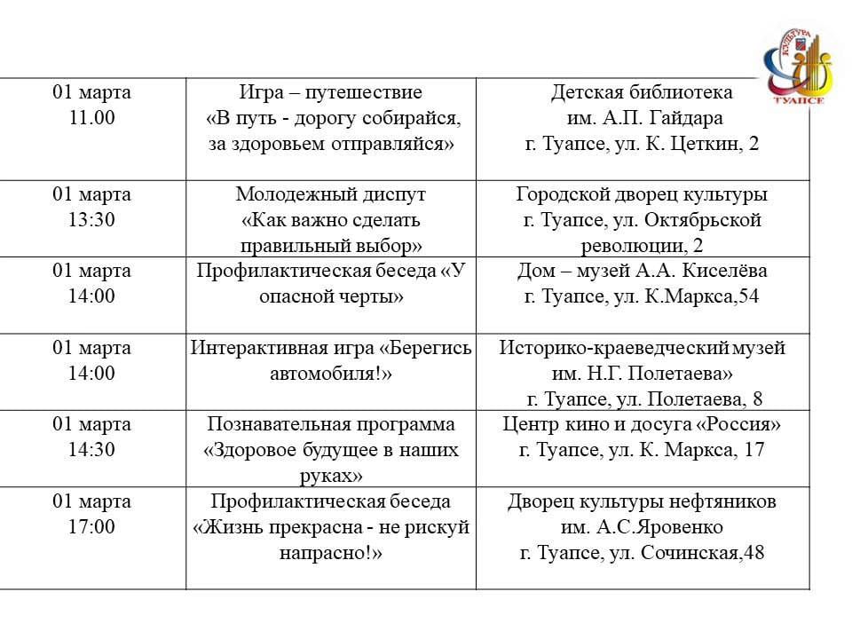 Отдел культуры администрации города Туапсе представляет афишу мероприятий, приуроченных к Международному дню борьбы с наркоманией.