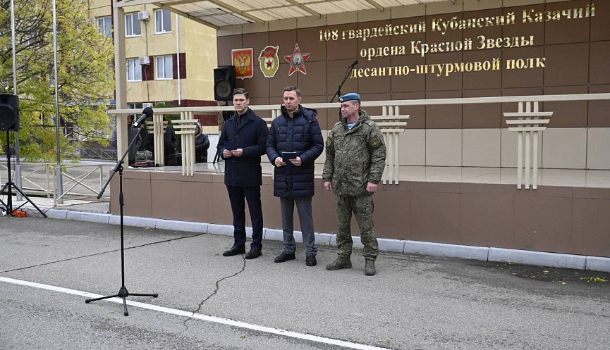 В 108-м гвардейском десантно-штурмовом полку прошла передача двух автомобилей УАЗ Патриот, которые будут направлены в помощь военнослужащим в зону СВО. Вручить бойцам ключи от техники приехали депутат Государственной Думы Сергей Алтухов и глава Новороссийска Андрей Кравченко.