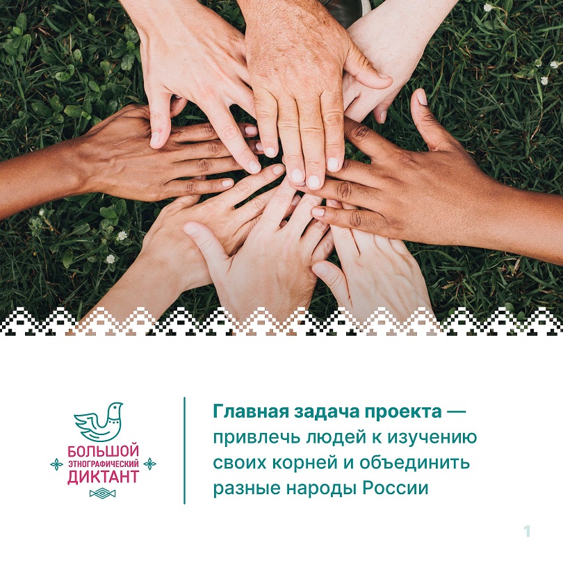Краснодарский край — один из самых многонациональных регионов России. Русские, армяне, адыги, татары, греки — малая часть тех народов, которые проживают на Кубани. Но много ли вам известно друг о друге? В преддверии Дня народного единства предлагаем вам проверить свои знания о людях из разных уголков страны. Примите участие в просветительском проекте «Большой этнографический диктант» по ссылке https://miretno.ru/ Акция будет проходить с 3 по 8 ноября. Подробнее о проекте читайте в карточках.