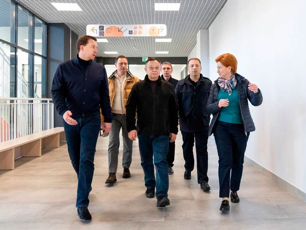 В микрорайоне Министерские озера министр посетил новую школу на 1100 мест. Здесь на площади 30 тысяч квадратных метров расположены актовый зал, три спортивных зала, медицинский пункт, столовая, библиотека и современные классы для учебных занятий. Кроме того, в проекте применено уникальное техническое решение – на эксплуатируемой кровле организовано прогулочное пространства.