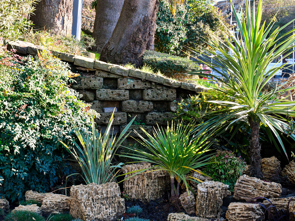 «Сочинский» стиль характеризуют нешаблонный подход, сочетание субтропических растений, декораций из натуральных материалов и причудливых скульптур, естественная красота старых деревьев.