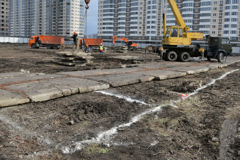 Фото: пресс-служба администрации КраснодараК стройплощадке школы на проспекте Константина Образцова в Краснодаре в ближайшее время сделают временную дорогу из твердого покрытия для спецтехники. Большегрузы будут проходить по ней со стороны улицы Тургенева. После завершения всех работ эту проезжую часть отремонтируют.