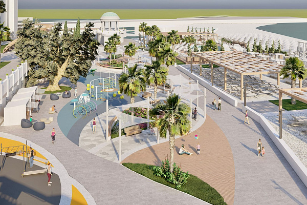 Пляж «Звездный» составит единый архитектурный ансамбль с обновленным пляжем «Ривьера». Большую часть территории займет озеленение субтропическими культурами.