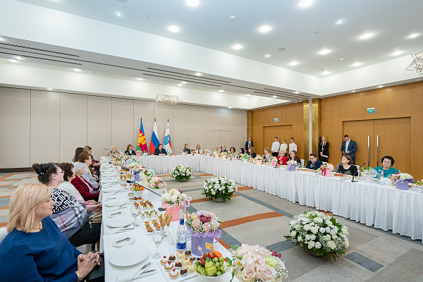 В Год педагога и наставника на торжественный прием, посвященный Международному женскому дню, были приглашены горожанки из всех социально ориентированных сфер города: учителя, врачи, работники культуры, руководители предприятий, участницы ветеранских и общественных организаций, военнослужащие, а также женщины, чьи сыновья и мужья защищают интересы Отечества в зоне боевых действий в новых регионах Российской Федерации.