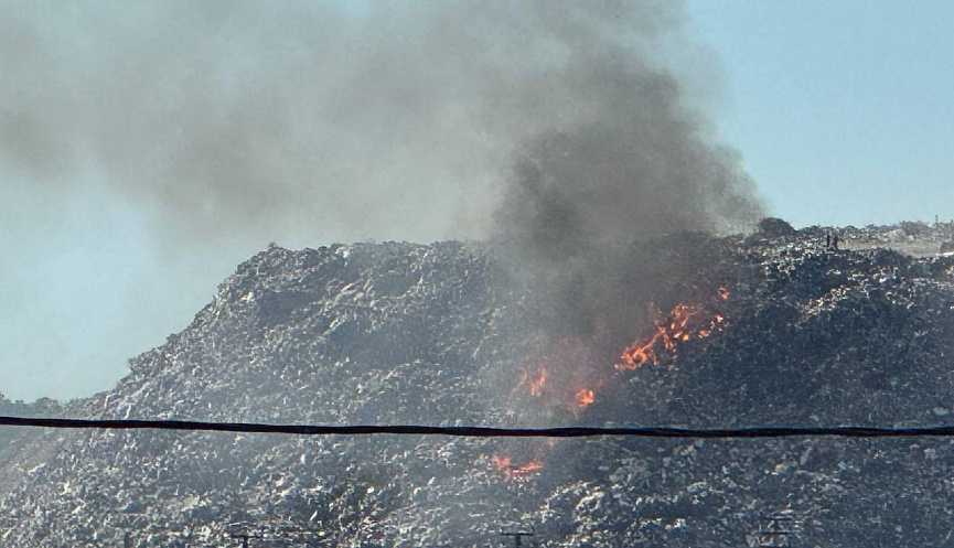 В 19:15 борьба с возгоранием на мусорном полигоне продолжалась. К этому времени на месте было задействовано 20 единиц спецтехники и 50 человек.