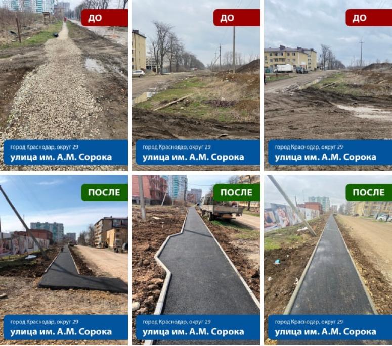 На улице им. А.М. Сорока в Краснодаре построили тротуар