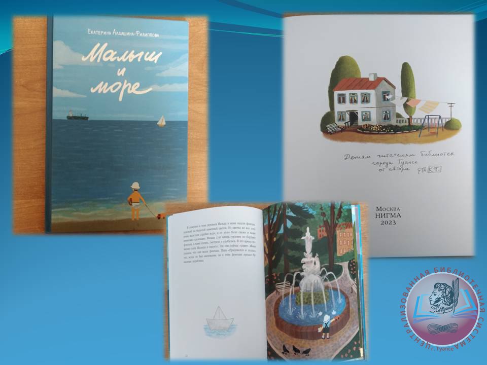 Книга о Туапсе художницы, мультипликатора Екатерины Алдашиной-Филипповой «Малыш и море» пополнила фонды детской библиотеки имени А.П. Гайдара. После необходимого процесса обработки книги ребята и их родители смогут познакомиться с произведением.