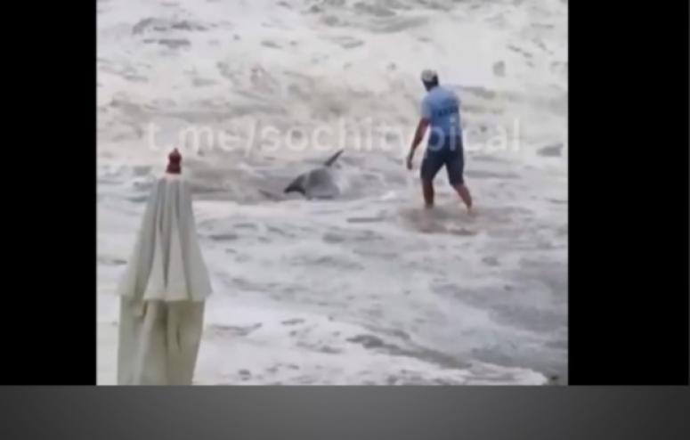 Очевидцы спасли выброшенных морем на пляж дельфинов в Сочи