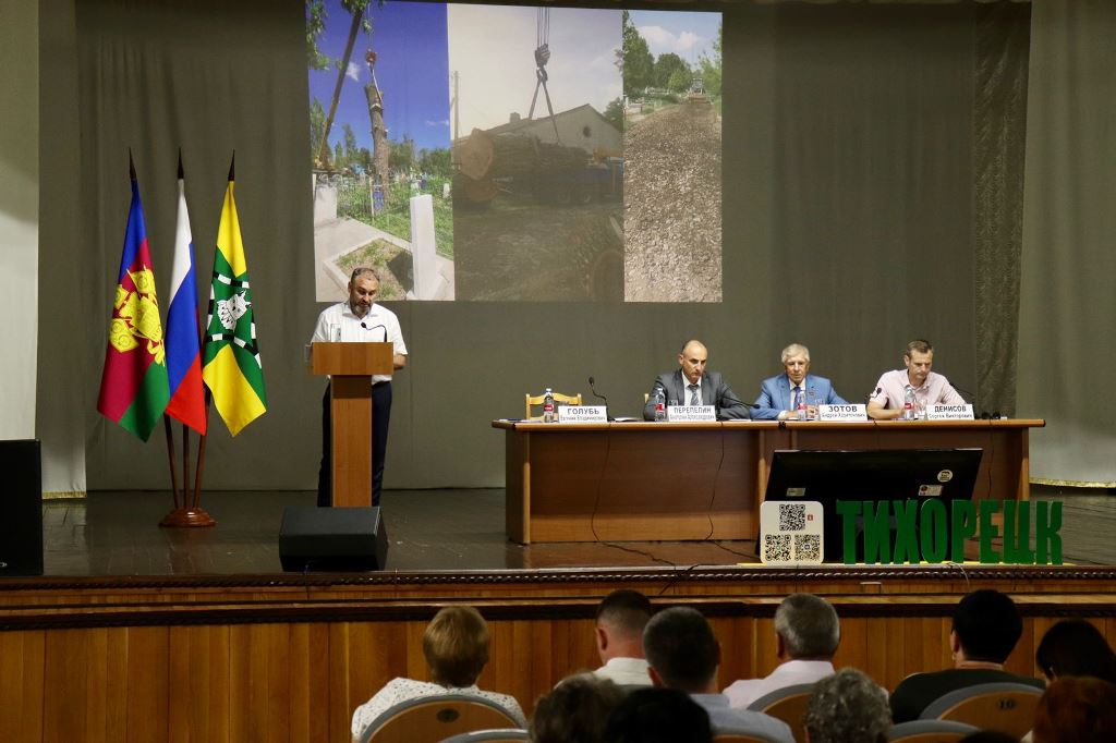 В завершении встречи об итогах социально-экономического развития Тихорецкого района рассказал присутствующим руководитель муниципалитета Анатолий Перепелин. С докладом о проведенных мероприятиях по обеспечению общественной безопасности на территории города за первое полугодие текущего года также выступила представитель ОМВД России по Тихорецкому району Полина Шевченко.