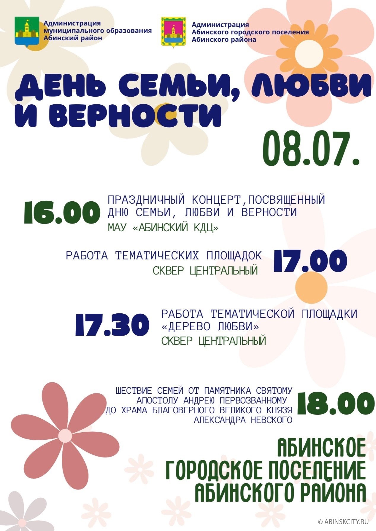 Уважаемые жители и гости города Абинска! Приглашаем вас на праздничные мероприятия, посвященные Дню семьи,