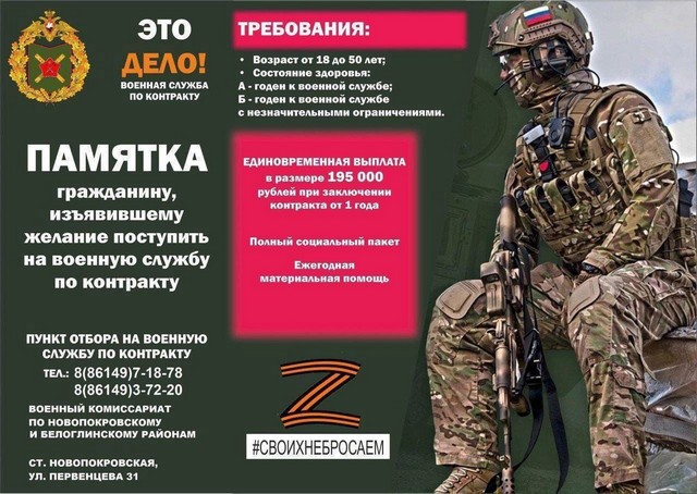 Военный комиссариат по Новопокровскому и Белоглинскому районам Краснодарского края приглашает граждан, пребывающих в запасе, поступить на военную службу по контракту в Вооруженные Силы Российской Федерации.