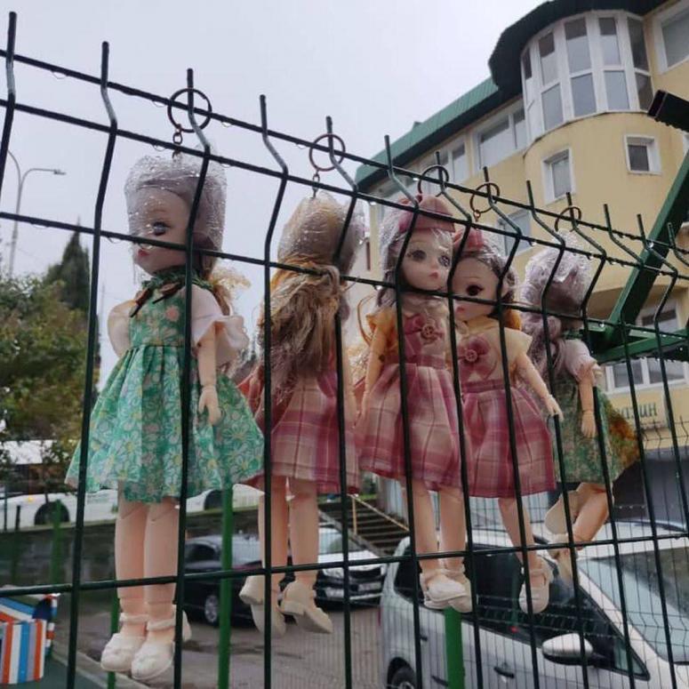 Сочинцев напугали жуткие куклы на заборе у детской площадки