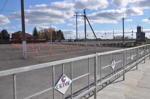 Автостоянка открытого типа предназначена для легковых и большегрузных машин. Завершающим этапом строительства стало благоустройство прилегающей территории, включая нанесение разметки и установку всех необходимых элементов инфраструктуры. Все металлоконструкции и элементы благоустройства, включая и светодиодные знаки, были изготовлены непосредственно на СКЗМК и установлены специалистами этого предприятия.