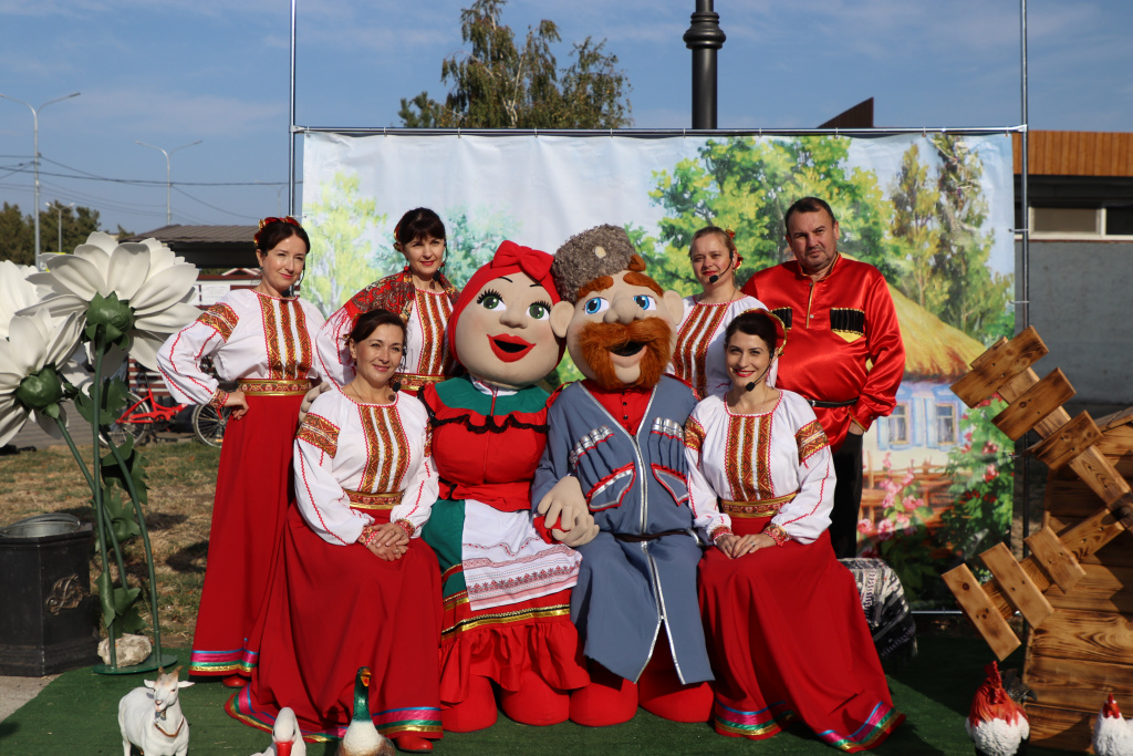 Утром возле Дома культуры на улице Тельмана развернулись выставки-продажи продукции перерабатывающих предприятий Динского района, выставка изделий декоративно-прикладного искусства и фотозоны. Звучал концерт творческих коллективов Динского района.
