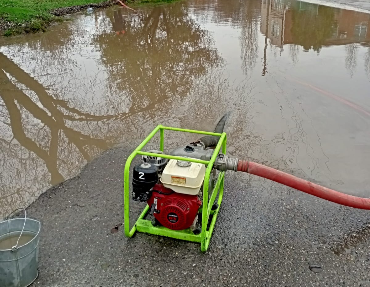 В Ейске продолжается работа по ликвидации последствий непогоды. Сотрудники службы спасения откачивают воду из подтопленных дворов и домовладений.
