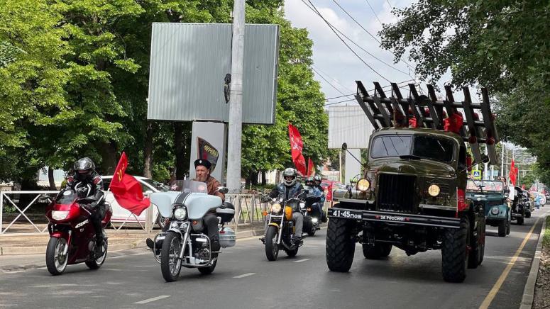 Днем 9 мая в столице Кубани прошел автомотопробег с участием ретротехники, приуроченный в Дню Победы.