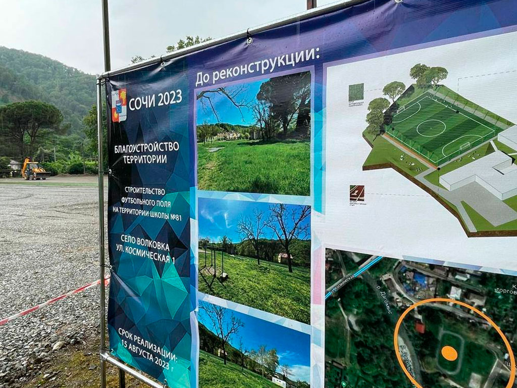 При участии инвестора в поселке Волковка благоустраивается стадион средней школы №81 казачьей направленности. В этом образовательном учреждении обучаются 310 юных сочинцев. Спортивным объектом также пользуются 200 воспитанников детского сада.