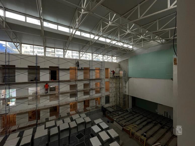Сейчас в Доме молодежи уже начали обустраивать фасад и сцену. Уже подготовлен каркас для нового планшета сцены. В кабинетах и концертном зале рабочие шпаклюют и грунтуют стены, на третьем этаже - клеят обои.