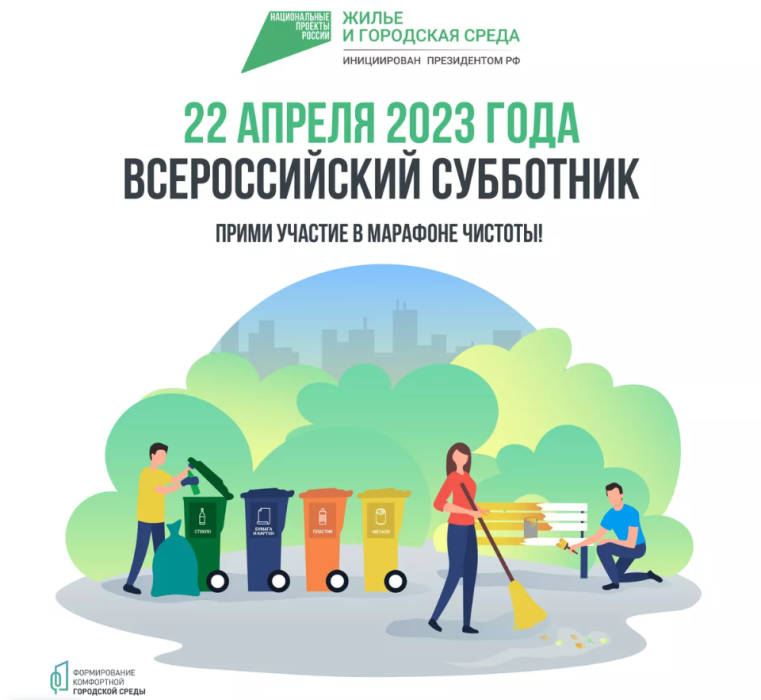 22 апреля все жители нашей страны выйдут на уборку своих населенных пунктов. Дружно в этот день всей Россией мы посвятим несколько часов своего времени наведению порядка на придомовых, придорожных территориях, в парках, скверах, на улицах городов, сел и поселков.