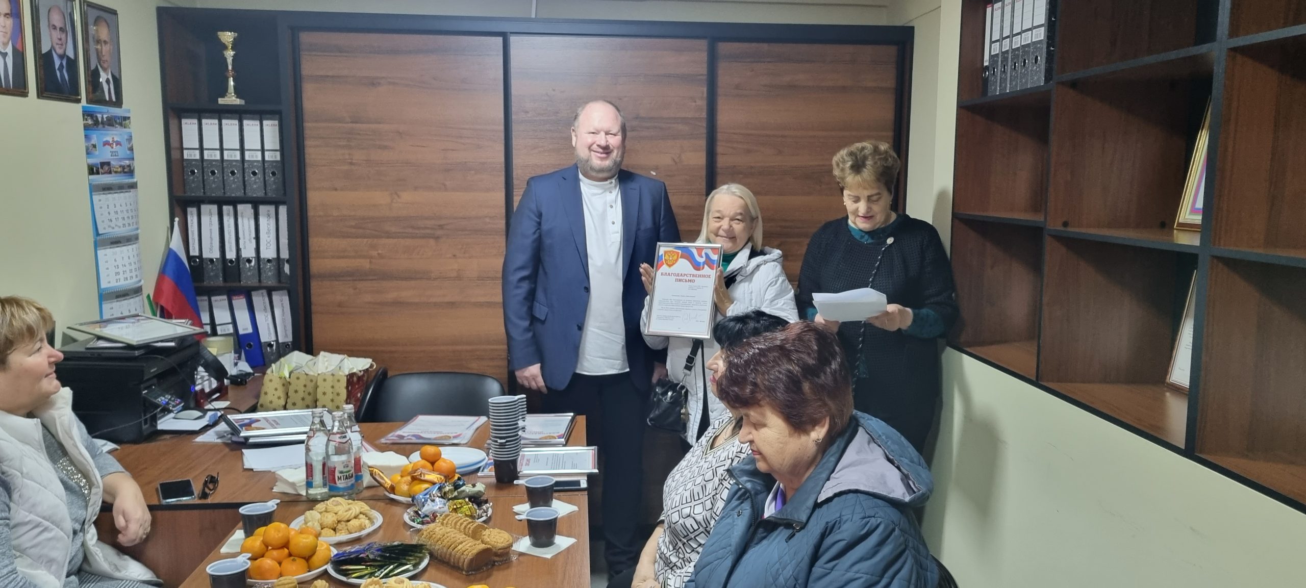 Депутат поблагодарил присутствующих за активную жизненную позицию, добросовестный труд, большой личный вклад в развитие Советов территориального общественного самоуправления «Весёлое», «Блиново» и деятельное участие в городской общественной жизни города Сочи. Председателям Советов ТОС Мешковой Зинаиде Ивановне и Землякову Виталию Сергеевичу, председателям квартальных, домовых комитетов были вручены Благодарственные письма.