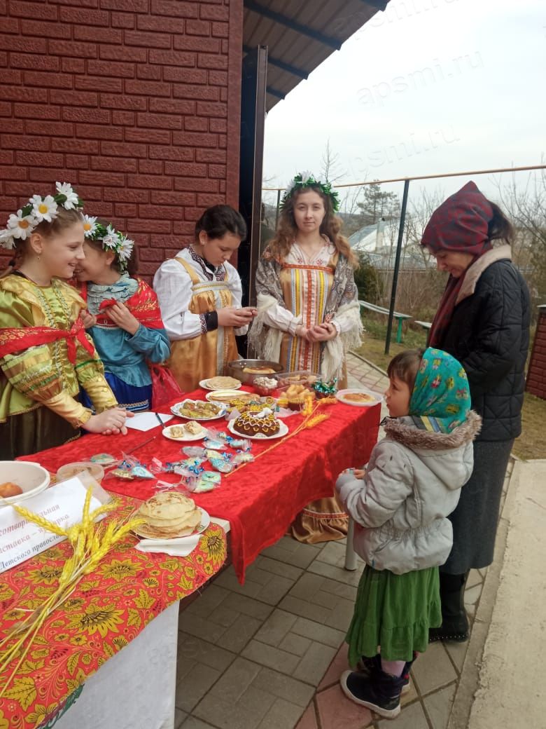Целью ярмарки «Солдатская Масленица» стал сбор средств для бойцов специальной военной операции. Воспитанники Свято-Георгиевской воскресной школы вместе с родителями и бабушками испекли блины с разными начинками, кексы, булочки, пироги, приготовили сладости. В самоваре заваривали чай на травах, собранных со святых мест.