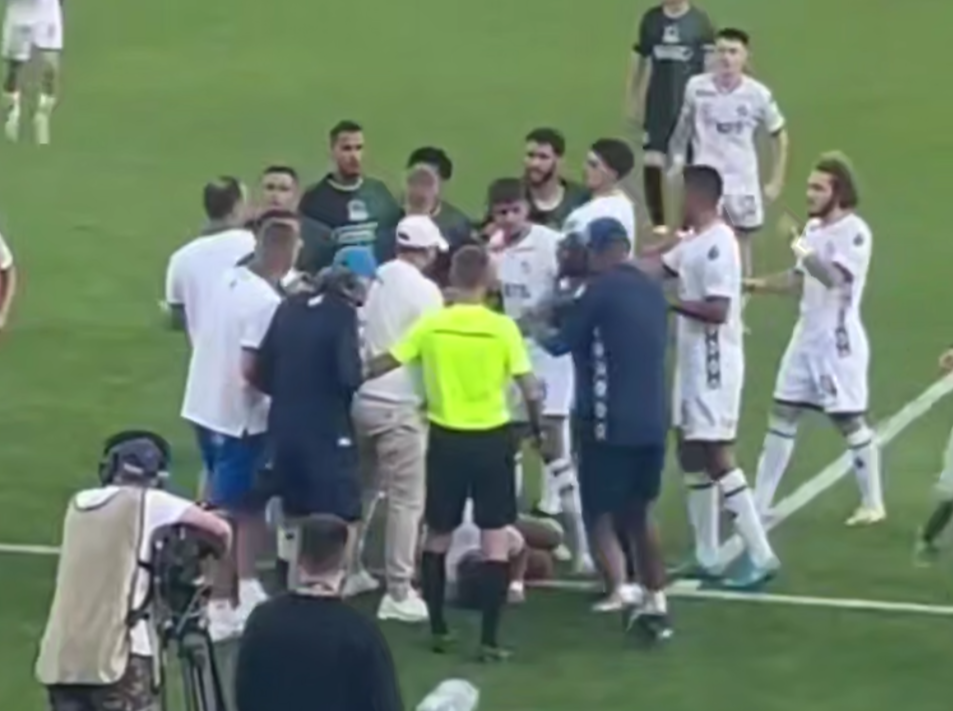 Судя по повтору видео, защитник краснодарцев Виктор Тормена столкнулся с Денисом Боковым. После этого тренер бело-голубых Марцел Личка толкнул бразильца в грудь. Вспыхнул массовый конфликт.