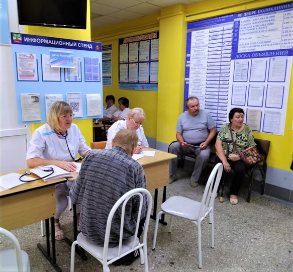 Прием пациентов вели специалисты Краевой клинической больницы № 1 им. профессора С. В. Очаповского: кардиолог, пульмонолог, эндокринолог, нефролог, ангиохирург, невролог, врач ультразвуковой диагностики. Всего было осмотрено 165 взрослых, из них 95 человек старше 60 лет.