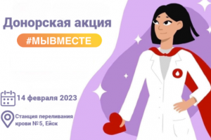 Приглашаем староминчан принять участие в донорской акции «Мы вместе», которая состоится 14 февраля 2023 года на базе «Станции переливания крови № 5» в городе Ейск. Любой здоровый человек от 18 лет, весом более 50 кг и не имеющий противопоказаний может стать донором и спасти чью-то жизнь.