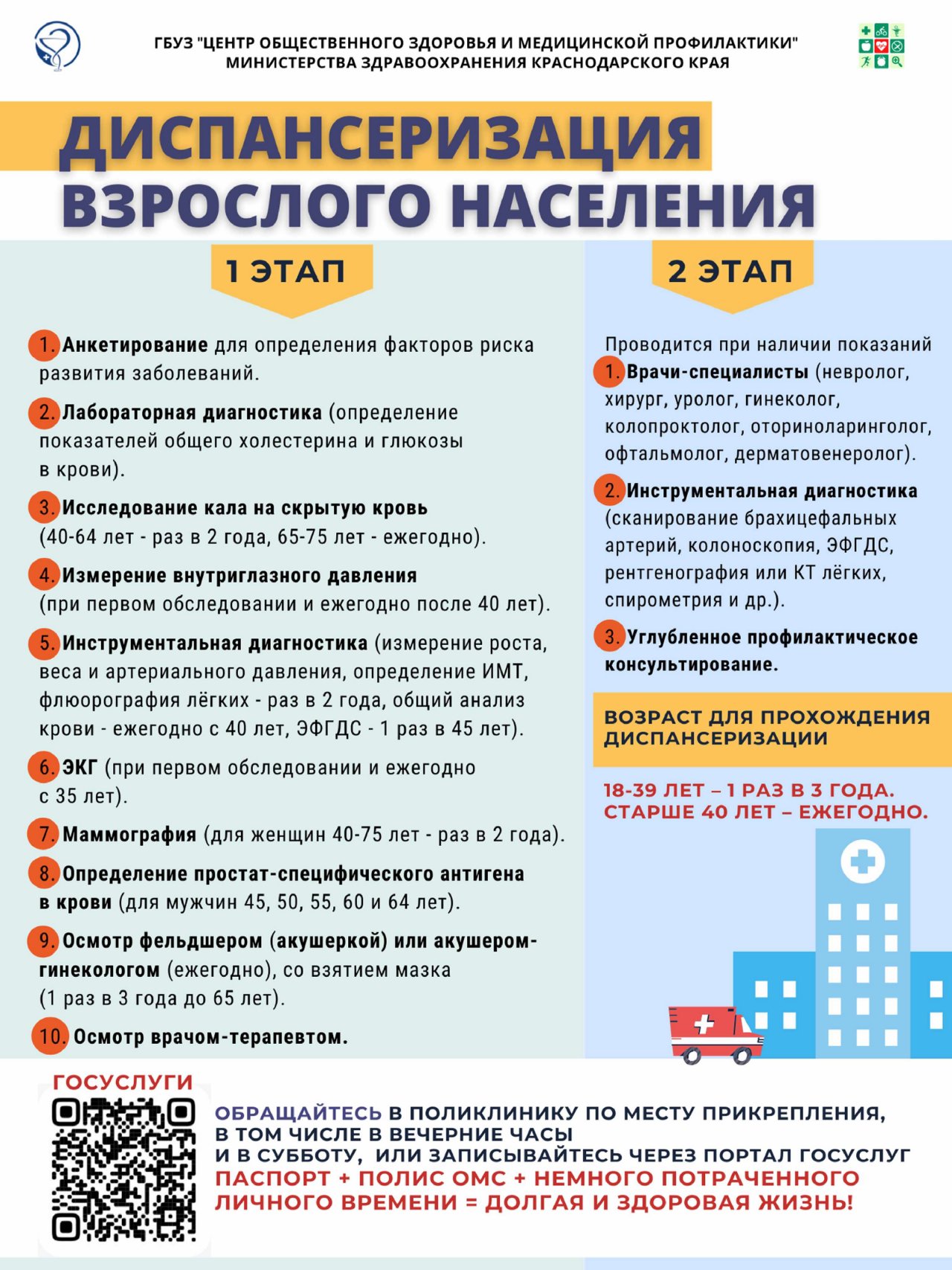 Где и когда можно пройти диспансеризацию, профилактический медосмотр: жителям ст. Павловской в поликлинике отделение медицинской профилактики, кабинет №118,114 или у участкового врача, жителям сельских поселений в участковых больницах и амбулаториях по месту жительства.