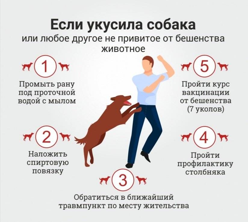 Неважно, укусил вас дикий зверь или домашний питомец — срочно обращайтесь за медицинской помощью! Лучше подстраховаться! Промойте рану теплой водой с мылом, желательно использовать хозяйственное, так как в нем больше щелочи. Также место укуса можно обработать 40–70 градусным раствором спирта или настойкой йода.