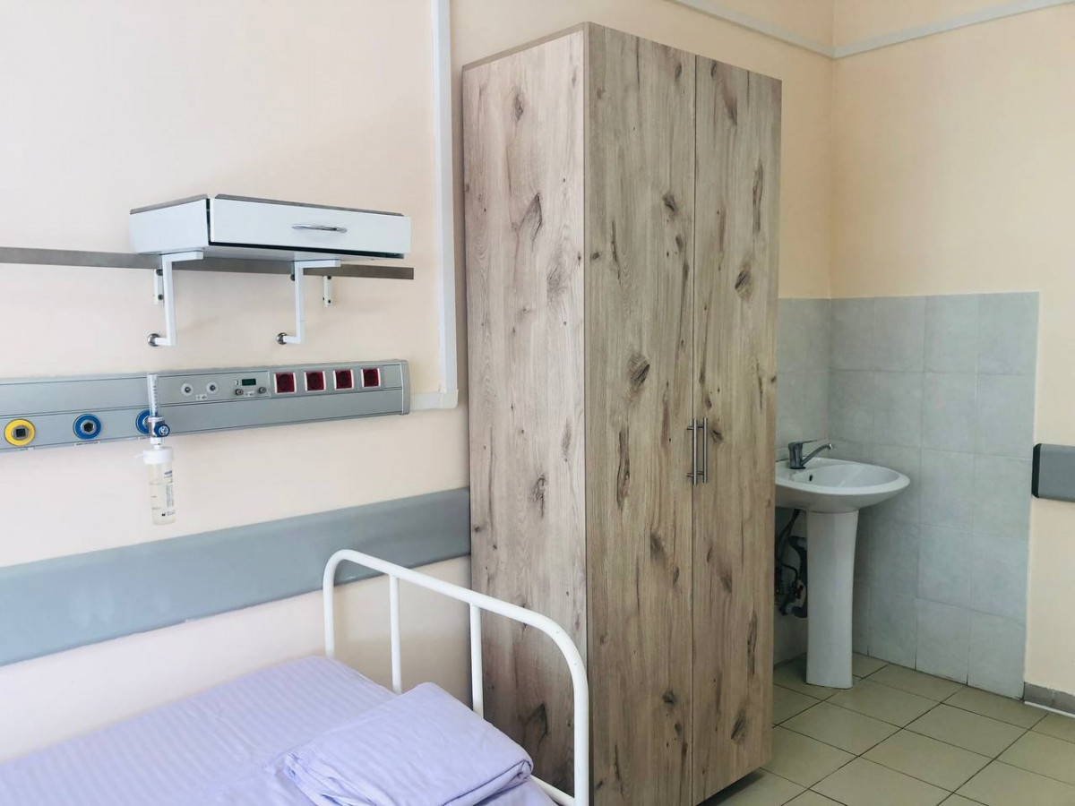 Приобретено новое медицинское оборудование, мягкая мебель в холлы для комфортного ожидания приема и корпусная мебель в палаты, где находятся больные.