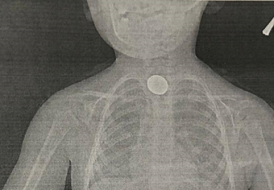 - Ребенку в экстренном порядке провели обзорную рентгенографию органов грудной клетки и брюшной полости. По результатам обследования выявлено наличие инородного тела - монета визуализировалась в верхней трети пищевода, - сообщили в пресс-службе больницы.