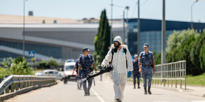 На первом этапе обрабатывают дороги. Параллельно специалисты собирают информацию о потребности в дезинфекции во дворах и на первых этажах домов. Чтобы заполнить заявление на обработку внутри домовладений, нужно подойти к автомобилю службы спасения, который проезжает по улице, или в оперативный штаб на ул. Субтропической, 2, тел. +7 (995) 211 28 31.