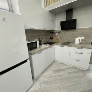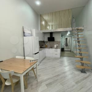 Квартира после ремонта, с новой мебелью и техникой. Высокие потолки 3,7 метра, благодаря чему на втором ярусе организована спальная зона (+12 метров). Все коммуникации центральные, в комплексе своя газовая котельная. Сырости нет никакой.